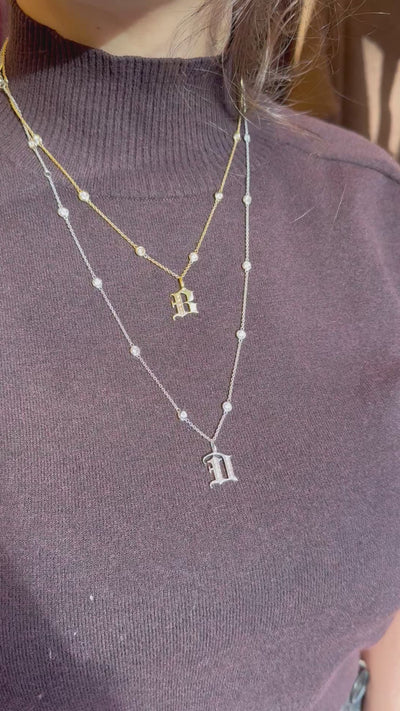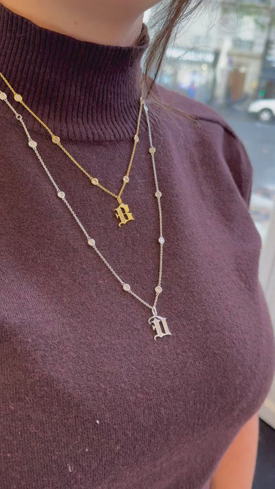 Lettre en écriture gothique en or 9K, l’alphabet entier est disponible en or jaune ou or blanc.